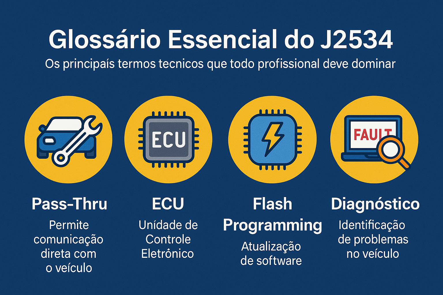 Glossário essencial do J2534: termos técnicos fundamentais para dominar a comunicação entre veículos e equipamentos de diagnóstico.